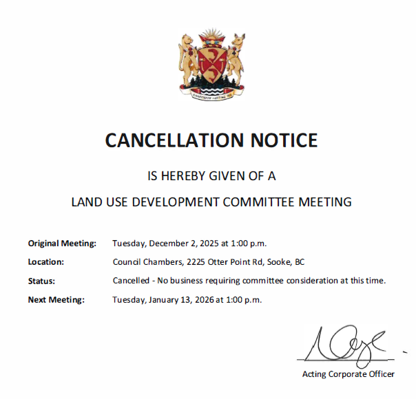 - Location: Council Chambers, 2225 Otter Point Rd, Sooke, BC