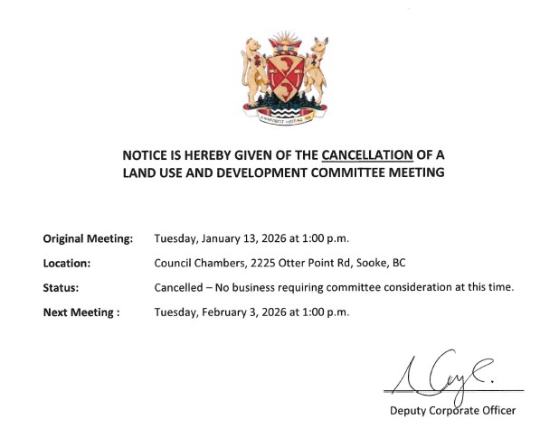 - Location: Council Chambers, 2225 Otter Point Rd, Sooke, BC