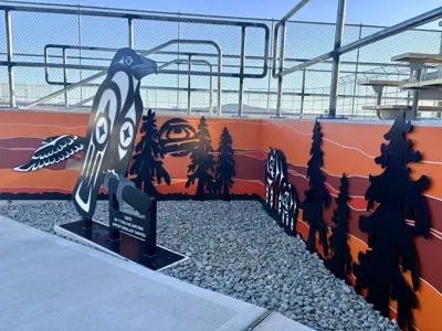 “The raven is a symbol of transformation, intelligence, and guidance,” said artist Shelley Davies. “By including two ravens and the mother and cub, I wanted to reflect both movement and togetherness - how this space supports play, gathering, and connection for families and the wider community. It’s been an honour to collaborate on a piece that feels so rooted in place.”