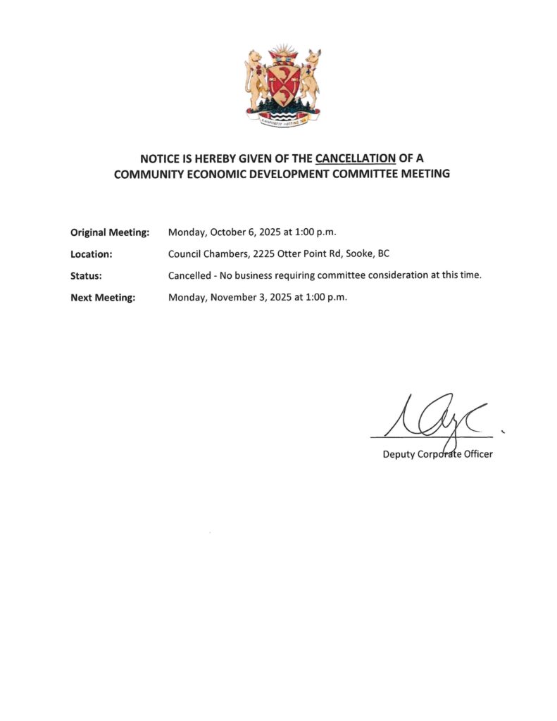 Notice of Community Economic Development Committee Meeting Cancellation – Monday, October 6, 2025